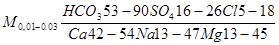 По химическому составу воды относятся к гидрокарбонатно-сульфатно-кальциево-магниевым, мягким. Средний химический состав вод по формуле Курлова следующий: