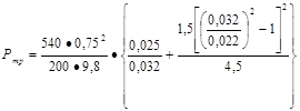 λтр = 0,025 – коэффициент гидравлических сопротивлений;