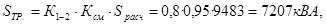 Определяем расчётную величину мощности трансформатора