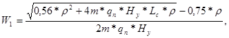 Определяем линию наименьшего сопротивления по подошве уступа – W, для этого рассчитываем W1 и W2 из которых принимаем меньшее значение, которое должно соответствовать условию W3<Wmin: