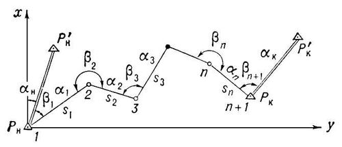 Эти невязки устраняют путём исправления измеренных углов и длин сторон поправками, которые определяют из уравнивания по методу наименьших квадратов.