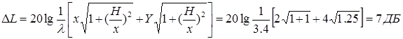 Б) оценим ослабление шума за экраном на той же частоте 100ГЦ: