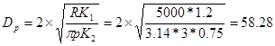 Округляем расчетный диаметр до стандартного значения: Dp=63 мм.