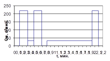 По полученным значениям строим циклограммы подачи масла, сначала отдельно для каждого гидродвигателя, затем суммарную.