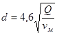Внутренний диаметр трубопровода рассчитывается по формуле: