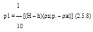 где p1 – давление, обусловленное разностью удельных весов в трубах и затрубном пространстве;