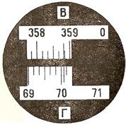 Отсчет по горизонтальному кругу 70° 0,5¢; отсчет по вертикальному кругу 358° 48¢.
