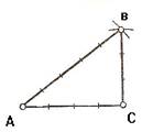 На (рис. 7, стр. 11) показано построение прямого угла в точке С к стороне АС. Это построение основано на том, что в треугольнике со сторонами 3; 4 и 5 м угол, лежащий против пятиметровой стороны, - прямой угол (90°).[2] Для получения большей точности, стороны этого треугольника могут быть увеличены в любое число раз.