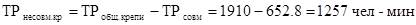 Находим трудоемкость крепления, не совмещенную с работой комбайна.