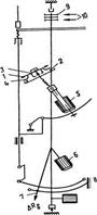 Круговой реохорд смонтирован на изоляционной панели и установлен под магнитной стрелкой. Магнитная стрелка выполнена из двух намагниченных стерженьков, которые закреплены в дюралюминиевом колпачке с агатовым подшипником. Подшипник насажен на острие оси 5. Стрелка снабжена изолированными от нее пружинными контактами 4.