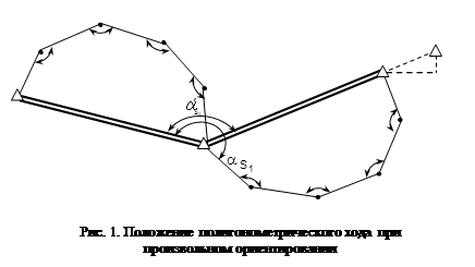 , вычисляются координаты всех пунктов полигонометрического хода, включая и координаты второго опорного пункта В. Результаты расчета иллюстрируются на рис.1.