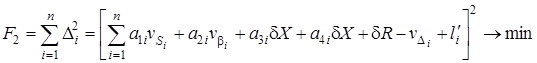 Для определения параметров вероятнейшей окружности из уравнения (33) сформируем вторую целевую функцию, преобразовав величину свободного члена li: