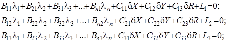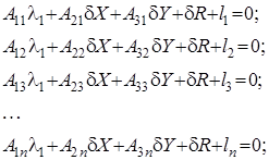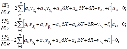 После дифференцирования из полученных производных сформируем уравнения поправок: