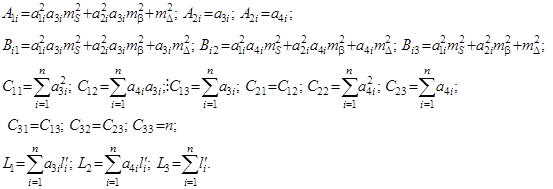 С учетом поправок в измеренные величины, выраженных через коррелаты (32), и перегруппировки членов уравнений, окончательно получим:
