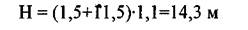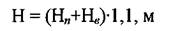 где Н„ - глубина приема, Н„=1,5 м; Нв - высота подъема песков, Hg=l 1,5м.