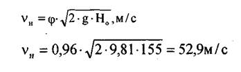 ф - скоростной коэффициент, ф=0,96; Н0= 14,3/(0,1-0,96>155 м.водн.ст.