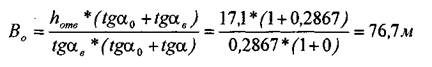 где ао - угол естественного откоса торфов, а0 =45°; а - угол наклона поверхности увала, ее =0; ав - угол выезда бульдозера на отвал, ав =12°.