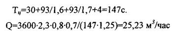 Т„=30+93/1,7+93/1,8+4=140 с. Q=3600-l,5-0,8-0,7/(140-l,25)=17,3 м^/час