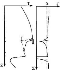 Схематическое распределение температуры и градиента температуры в добывающей скважине приведено на рис.2.4.