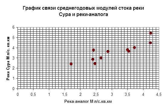 Река-аналог должна иметь многолетний период гидрометрических наблюдений для точного определения нормы стока и не менее 6 лет параллельных наблюдений с изучаемой рекой.