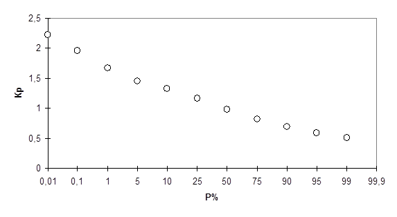 Ординаты кривой определяем в зависимости от коэффициента Сv по таблицам, составленным С.Н. Крицким и М.Ф. Менкелем для Cs=2Сv. Для повышения точности кривой необходимо учитывать сотые доли Сv и провести интерполяцию между соседними столбцами цифр.