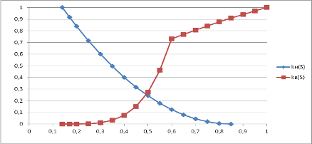 Рисунок 3 - Кривые относительных проницаемостей
