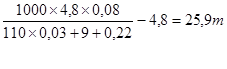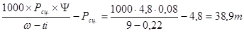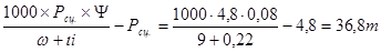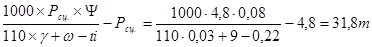 где, Н1, Н2 – отметки выработки в конечной и начальной точках Н1=323,0м; Н2=150,0м