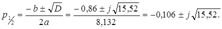 D = b2 – 4ac = T12 – 4T2 = 0,7396 – 16,264 = –15,52;