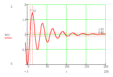 Определим перерегулирование – максимальное отклонение регулируемой величины от установившегося значения: