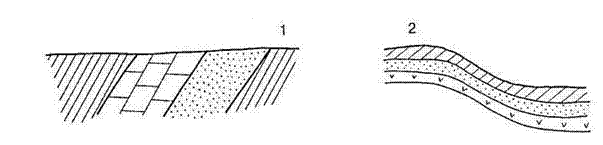 С инженерно-геологической точки зрения наиболее благоприятными местами строительства являются горизонтальное залегание горных пород, где присутствует большая их мощность, однородность состава. Фундаменты зданий и сооружений располагаются в однородной грунтовой среде, при этом создается равномерная сжимаемость слоев под весом сооружения и создается наибольшая их устойчивость (рис. 4).