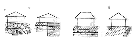 Рис. 4. Неблагоприятные (а) и благоприятные (б) условия строительства.