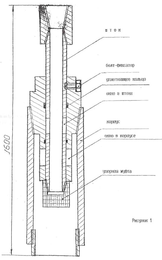 Депрессионное устройство (рис.1) изготавливается из пришедшего в негодность штангового насоса Ш1-44 и состоит из: штока, корпуса 0114 мм, переводников, упорной муфты.