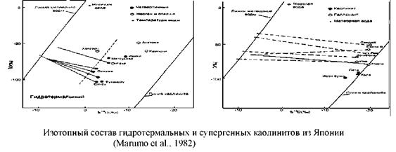 Непропорциональность SO2 приводит к образованию изотопически тяжёлого сульфата, в то время как сульфаты и сульфиды, образованные при низких температурах, будут иметь аналогичные составы, вследствие кинетических эффектов, устраняющих равновесное фракционирование. Состав 18О в каолините, образованном из холодной грунтовой воды, будет значительно тяжелее, чем высокотемпературные каолиниты, т. к. при более низких температурах фактор фракционирования более эффективен. Таким образом, комбинацию изотопных данных по сере и кислороду, наряду с K-Ar данными можно однозначно использовать для идентификации типа систем