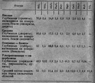 Таблица 1. Химический состав магматических и осадочных пород[3]