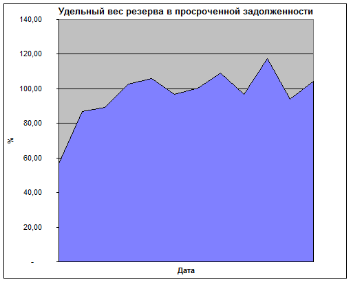 Наибольшим удельным весом в резерве обладает четвертая группа риска, ибо кредиты, отнесенные к ней, являются наиболее рисковыми. Правда, данный показатель снижается. В то же время он растет по первой группе риска, которая занимает по удельному весу в резерве второе место.