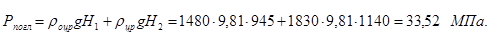 Ргст.цр – гидростатическое давление от столба цементного раствора