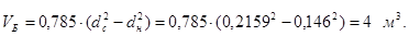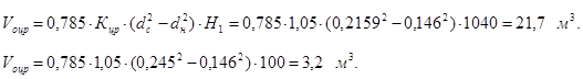 Определим объём тампонажного раствора необходимый для цементирования нижнего участка цементным раствором.