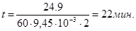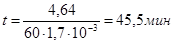Найдём время закачки облегчённого цементного раствора: Qмах=qсм