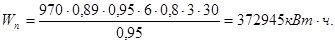 Суммарное количество потребляемой электроэнергии определяем по формуле: