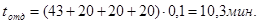 Время на задвижку конвейера принимаем по нормативу 10-30 мин.: