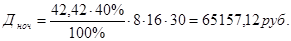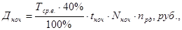 Определяем сумму доплаты за работу в ночное время по формуле: