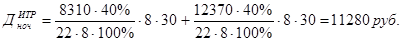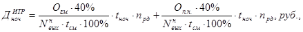 Определяем сумму доплаты ИТР за работу в ночное время по формуле: