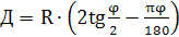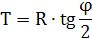 Отрезки касательных от точки ВУ до точки НК и КК называются тангенсами – Т и определяются по формуле: