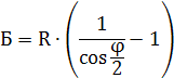 Отрезок от вершины угла (ВУ) до середины кривой (СК) называется биссектрисой – Б и определяется по формуле: