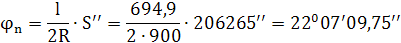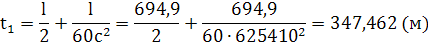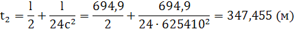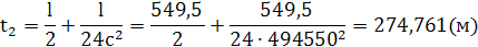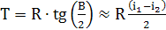 Для вычисления координат переходных кривых, расположенных на линиях тангенсов, определим отрезки t1 и для контроля t2 по формулам: