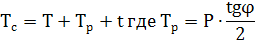 Общий тангенс Тс от вершины угла до начала переходной кривой равен: