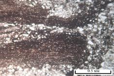 Ниже приведено описание шлифов пород, залегающих непосредственно ниже и выше тела базальтоидов.