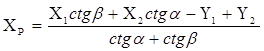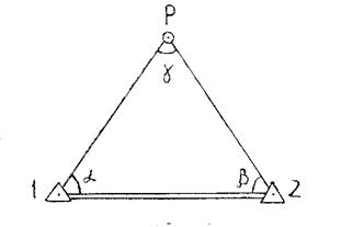 α, β – горизонтальные углы, измеренные на исходных пунктах.