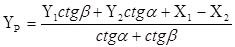 где X1, X2, Y1, Y2 – координаты исходных пунктов