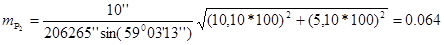 - среднюю квадратическую ошибку положения торчки Р для каждого варианта засечки: mp1=0,079 м, mp2=0,064 м